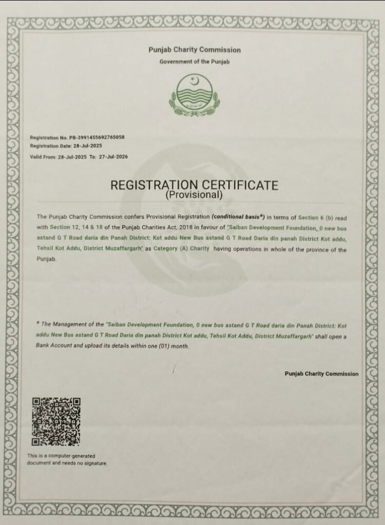Saiban Development Foundation is a non-profit organization working to promote environmental protection, community development, and sustainable growth across Pakistan. We aim to create awareness and take practical steps toward a cleaner, greener, and healthier Pakistan.